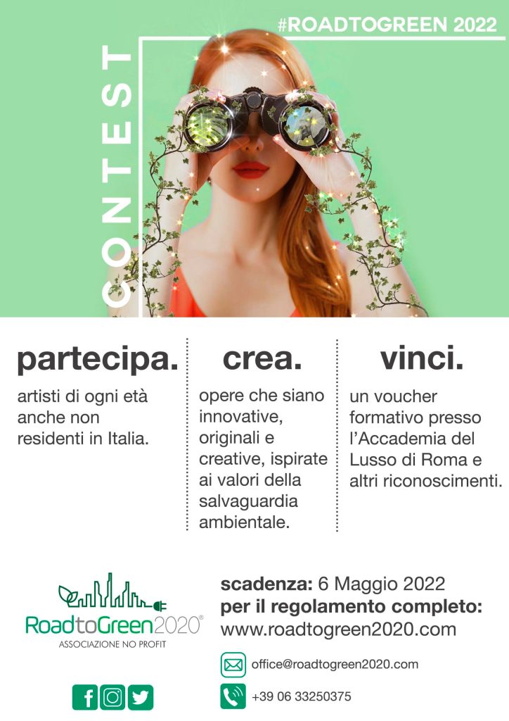 Le iscrizioni al contest possono effettuarsi online tramite www.roadtogreen2022.com. Il termine per l’iscrizione è il 6 Maggio 2022, alle ore 18. Il vincitore sarà decretato durante l’evento “La città del futuro” che si terrà il 26 Maggio 2022 a Roma. In palio per il vincitore un Voucher presso l’accademia del Lusso di Roma.